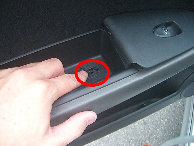 助手席はパワーウインドウスイッチではなく手掛け部分に小さなカバーがあり開くとねじが見えます。